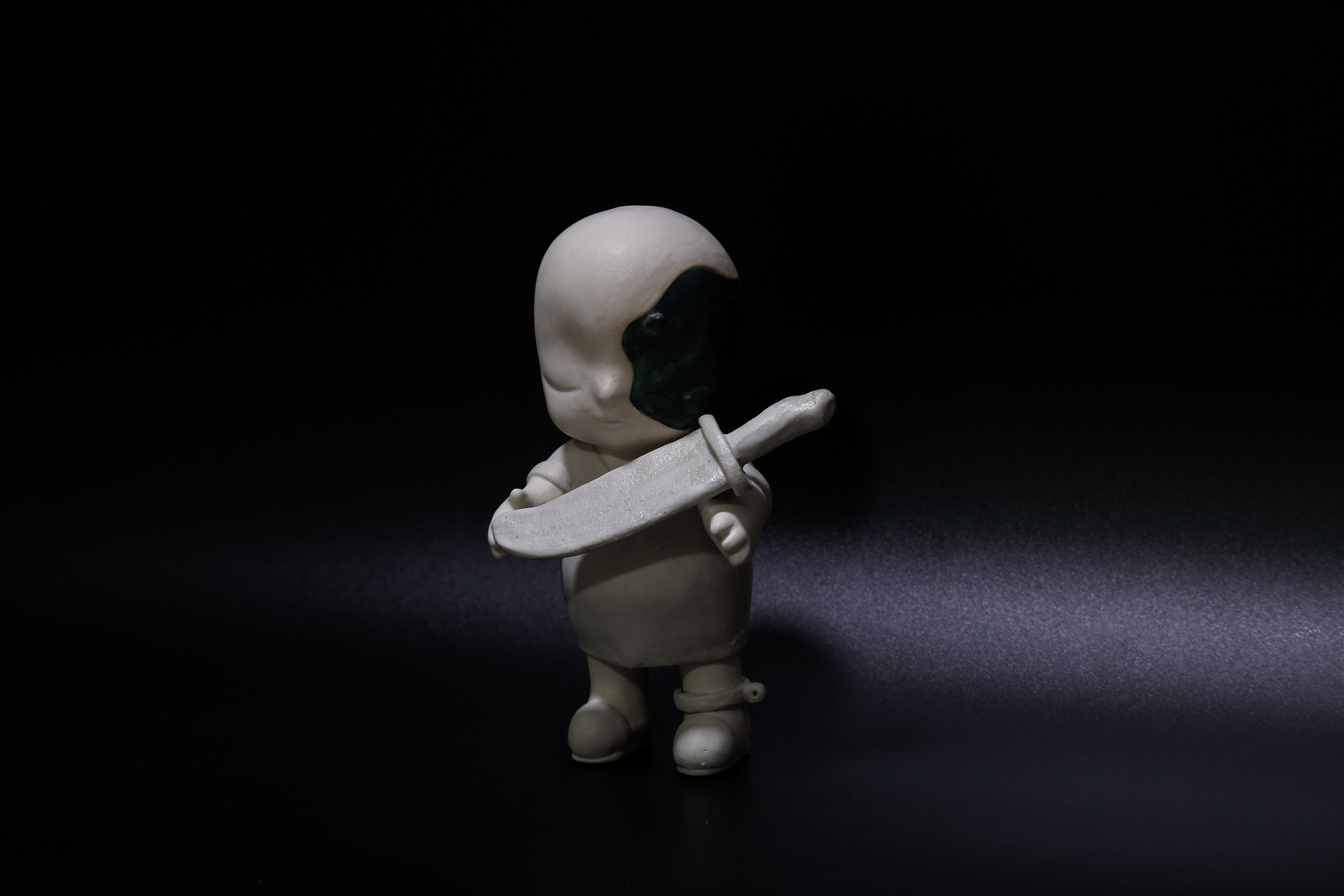 Painted in white, the ‘Thirty-six heavenly stars’ of the Water Margins series have been reinterpreted in a state of infancy as they lie asleep adjacent to the unceasing flowing course of events in time while strokes of colours get dappled onto each of these individual characters.